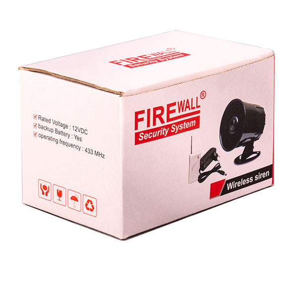 آژیر بیسیم فایروال | FIREWALLقابلیت اتصال به تمامی دزدگیر ها را دارد و فرستنده آنتن دار آن تا فاصله ی 25 متری قادر به برقراری ارتباط با دستگاه مرکزی می باشد .